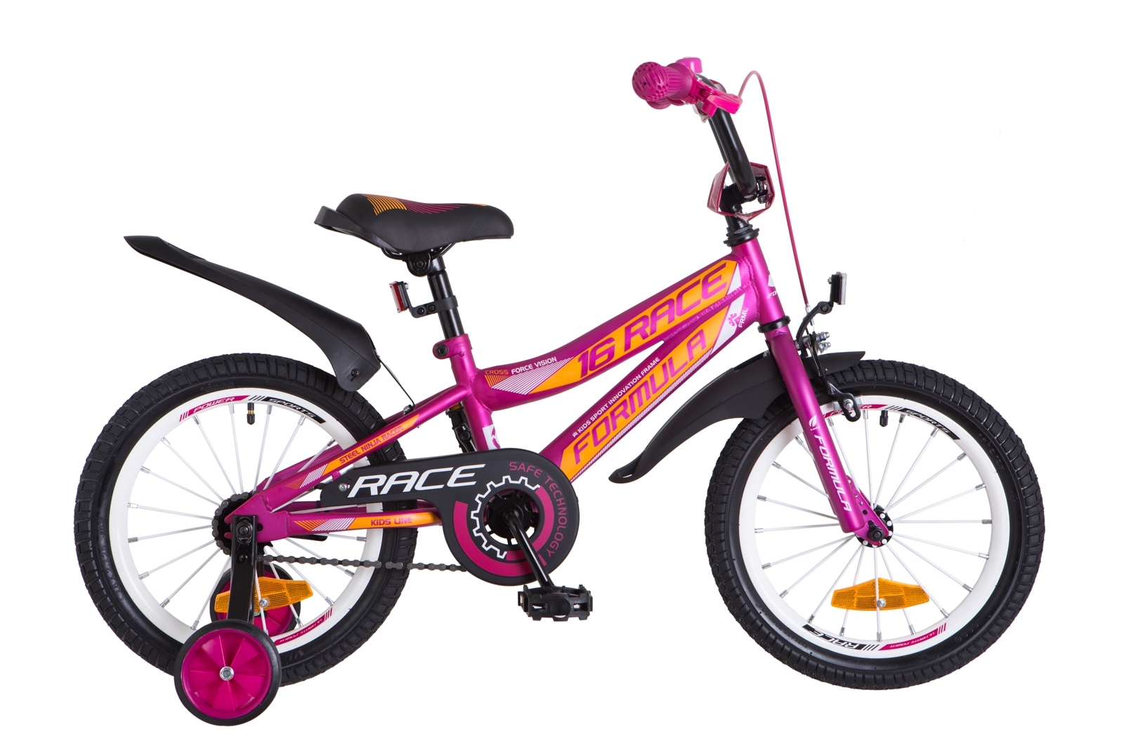 Велосипед «совсем как у взрослых», с серьёзным спортивным дизайном. Выбор цветов и форма рамы подходит и мальчикам и девочкам ростом от 95 до 105 см. Кататься на Race хорошо во дворе, на детской площадке. Тренировочные колёса нужны для равновесия во время обучения. Race 16 — это стильные колёса, как на взрослом BMX, усиленные белые спицы и стальной обод.