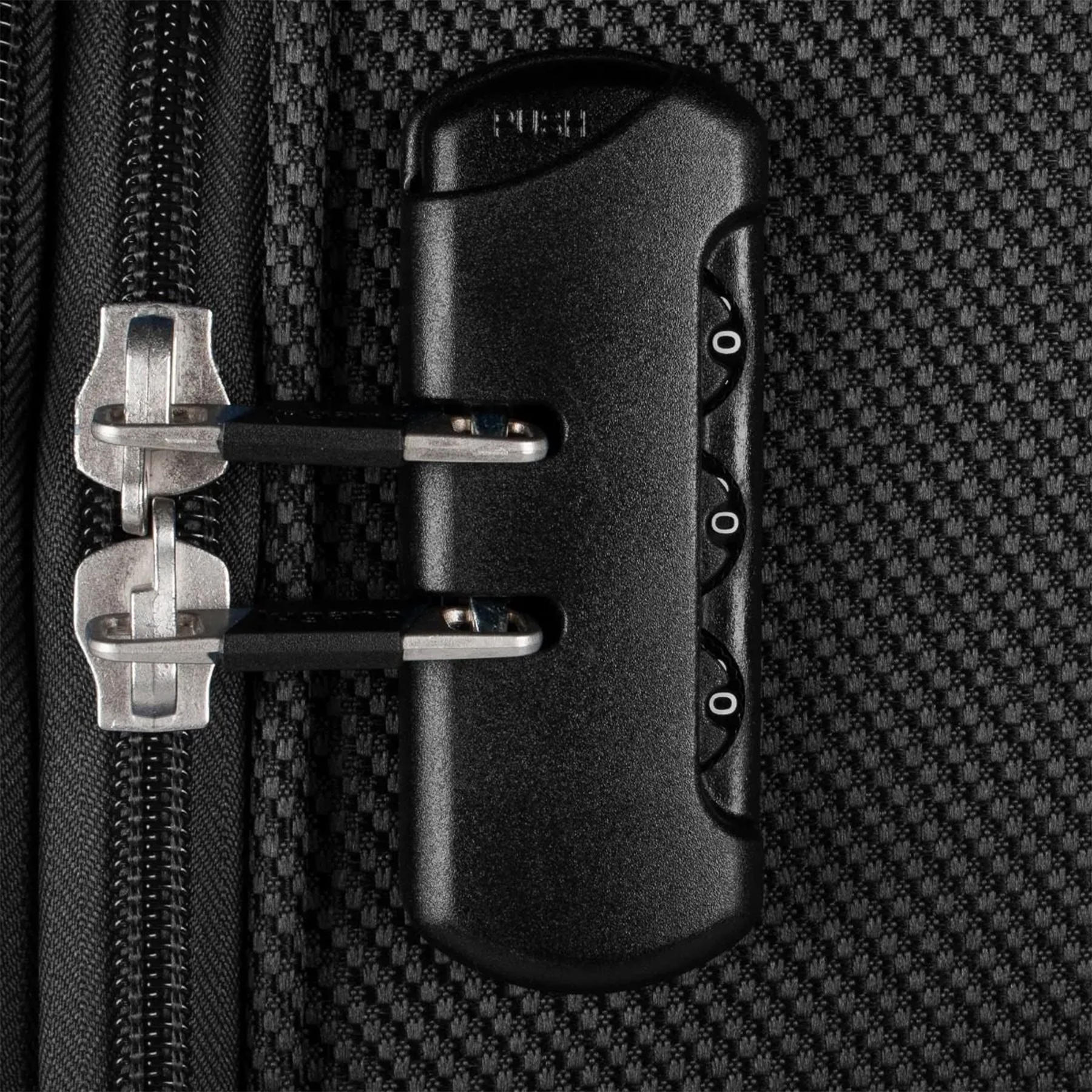 - Кодовий замок – валіза оснащена кодовим замком. Замок не дозволяє відкрити валізу ключем або іншим металевим предметом ззовні. Замок можна відкрити лише знаючи тризначний код.