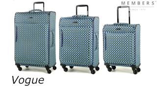 Колекція валіз Members Vogue представлена моделями з рельєфної тканини в забарвленнях з оригінальними візерунками, які вигідно виділяють вашу валізу і не дозволять її сплутати з десятками інших у багажних відділеннях. Однією з головних переваг валізи Members Vogue є їх малою вагою, що дозволить їх використовувати більш ефективно при вагових обмеженнях авіаперевізників. Основні характеристики: