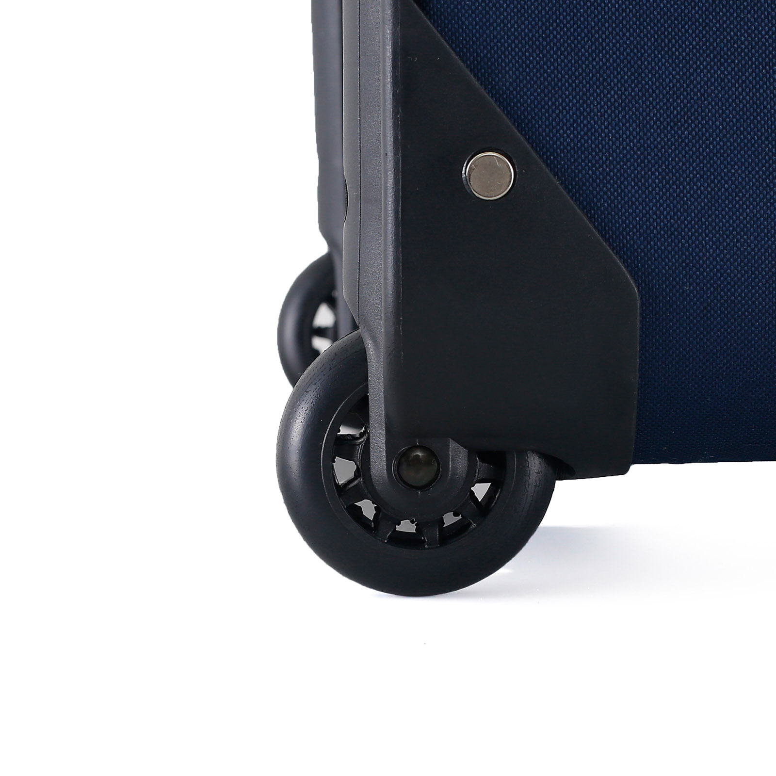 Валізи Semi Line оснащені міцними подвійними колесами вбудованими у спеціальні ніши, які забезпечують плавне пересування навіть при значному навантаженні. По вузькій стотоні валіза оснащена суцільною пластиковою вставкою, що сприяє більшій жорсткості і дозволяє тримати форму. Тканина має внутрішнє водозахисне покриття, отже речі будуть лишатись сухими навіть під дощем.