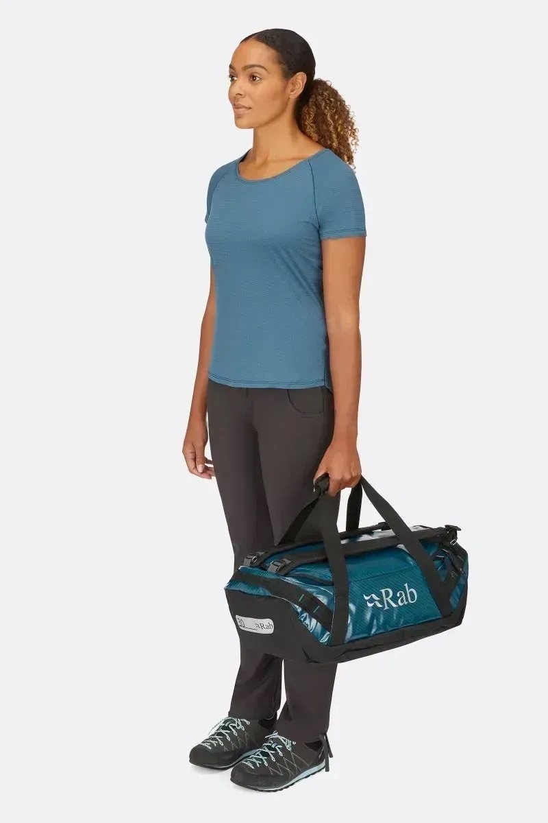 Міцна і надійна дорожня сумка Rab Expedition Kitbag II 30 з великим обсягом вміщує все необхідне для поїздок і подорожей. Вона виготовлена з міцної водонепроникної тканини, з потрійними швами і подвійною товщиною основи, вона легко витримує найсуворіші умови експлуатації. Доступ до вашого спорядження швидко і легко завдяки великому основному отвору та двом внутрішнім кишеням під клапаном, зручним для зберігання дрібних речей. Шлейки-шнурки дозволяють прикріпити спорядження до зовнішнього боку сумки, а застібка-блискавка забезпечує безпеку під час подорожі. Завдяки знімним плечовим ременям, двом центральним ручкам та двом торцевим ручкам сумка забезпечує повну універсальність перенесення, що дозволяє легко транспортувати її будь-якою місцевістю.