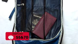 Osprey Farpoint 70 – це модель-трансформер, яка поєднує в собі функції валізи, традиційного туристичного рюкзака та маленького рюкзачка міського типу. Легкий і міцний матеріал супроводжував те, що вага виробу значно зменшилася. Для спинки майстра вибрали матеріал, який називається AirScape, що бездоганно вентилюється і не провокує потіння. Перевагою моделі є невеликий рюкзачок, який можна відстібати.