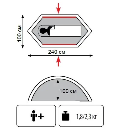 - Вес палатки: 2,3 кг