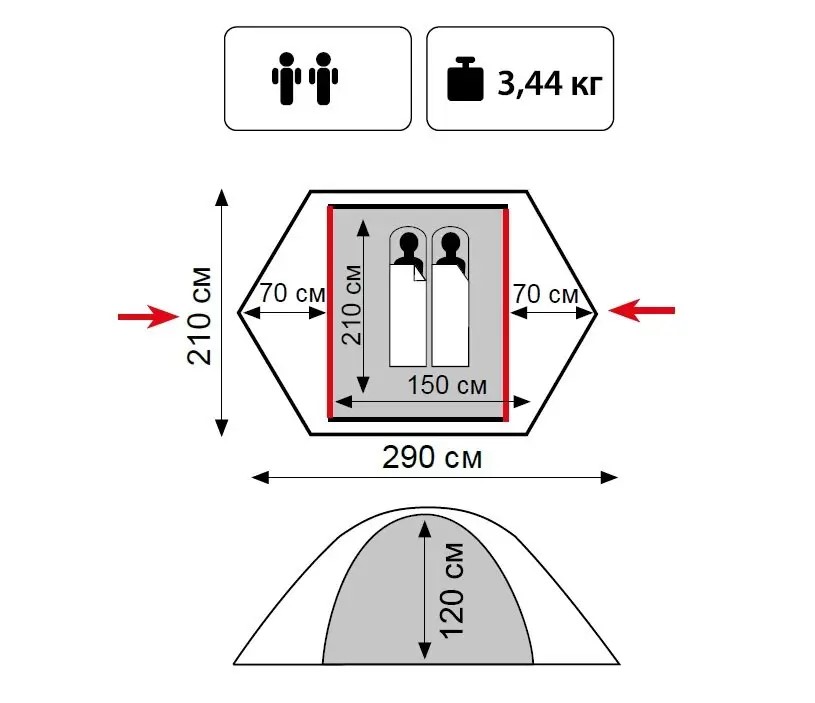 - Внутренняя палатка: 100% дышащий полиэстер