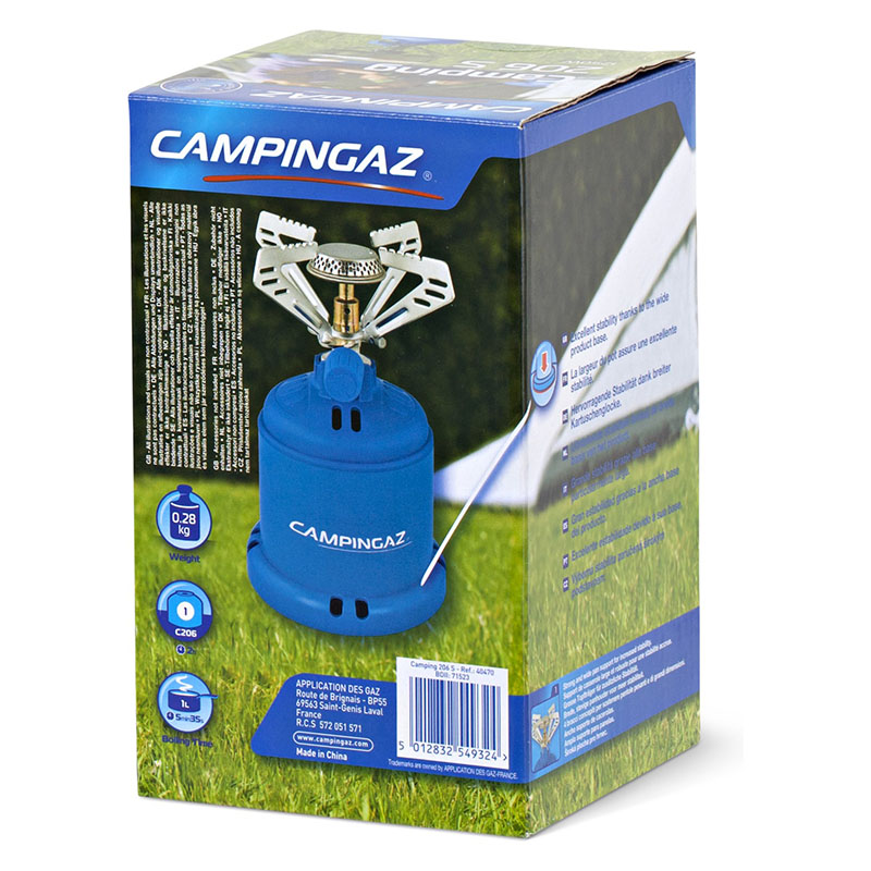 Camping 206 – це чудовий газовий пальник з якісною підставкою з пластику, який також служить картриджхолдером, де розташовується балон. Вона допоможе за лічені хвилини довести до кипіння воду для чаю або кави, приготувати гарячий і смачний обід. Металеві стійки дозволять надійно розмістити невеликі чашки, казанки чи сковорідки. Газовий пальник Campingaz Camping 206 CMZ570 досить економічний, середній час роботи складе дві години, чого цілком вистачить для повноцінного приготування на кілька днів. Для більшої віддачі тепла і відповідно економії газу рекомендується проводити приготування їжі в захищених від вітру місцях або використовувати спеціальні щити для захисту від вітру. Модель дуже практична та легко миється, застосування якісних матеріалів гарантує великий термін служби.