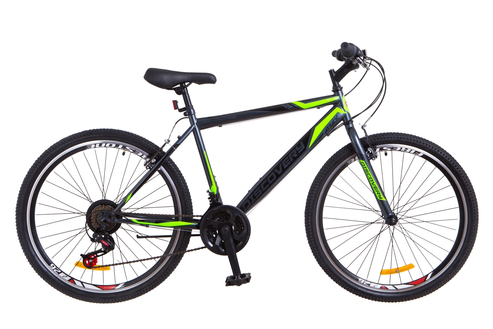 Самый простой из возможных вариантов, велосипед Attack от марки Discovery станет находкой для того, кто не готов покупать дорогое оборудование и тратить дни на сложный сервис и хранение. Это городская модель на высокой мужской раме 18 дюймов (на рост от 160 до 178 см в классической форме. Навеска Attack предельно простая, но вместе с этим надёжная: ободные тормоза, двойной алюминиевый обод, 18-скоростная трансмиссия с переключателями Sypo гриашифты. Покрышки с универсальным протектором для асфальта и грунтовых дорог, то есть идельно подходят для поездок по городу. Мужской городской велосипед Attack станет лучшей альтернативой общественному транспорту в любое время года для городского жителя.