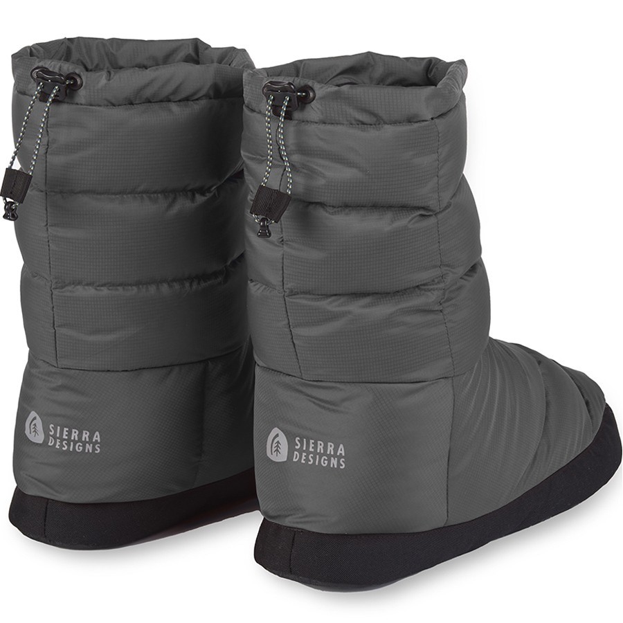 Комфортные носки пуховые Sierra Designs Down Bootie II для мужчин и женщин. Отменній вариант для альпинизма, кемпинга, туризма или загородного дома. После продолжительной носки предоставленная модель согреет ноги и поможет им отдохнуть. Даже в дождливую и сырую погоду, устойчивый к влаге, пуховый наполнитель DriDown™ сохраняет свои термоизоляционные свойства. Верхняя часть создана из прочного полиэстера с водоотталкивающей пропиткой, а усиленные боковые части смогут обеспечить износостойкость и продолжительный срок службы. Подкладка состоит из трикотажной ткани приятная для надевания носков на босые ноги. Промежуточная подошва служит для лёгкого уровня амортизации. Подошва с резиновым принтом препятствует скольжению на коврике, поверхности дна палатки или спальных мешков.