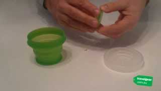 - GoCup швидко збільшується до розмірів чашки або перетворюється на надкомпактну шайбу простим натисканням.