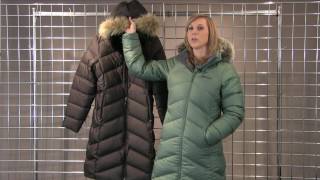 Тепло пухове пальто з довжиною нижче коліна. Елегантне, комфортне, виконане із застосуванням передових технологій. Надійна тканина з водовідштовхувальною обробкою захистить від негоди, а високоякісний гусячий пух подарує вам комфорт та тепло у найсуворіші холоди. Утеплений пухом капюшон оброблений штучним хутром. Капюшон, так само як і галявину з хутра, можна відстебнути.