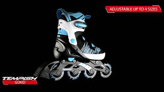 Роликові ковзани дитячі Tempish GOKID - якісна модель з розсувним механізмом, що дозволяє регулювати в межах чотирьох значень розміру. Найменший розмір оснащений колесами діаметром 64 мм, решта - 70 мм. Ширина при цьому залишається незмінною і дозволяє однаково добре почуватися на дорожньому покритті дитині будь-якого віку.