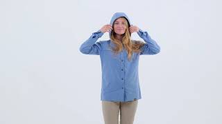 Сорочка має зручний каптур з затяжкою, який захищає від палючого сонця і не злітає під час вітру. Рукави, за бажання, можна підвернути і зафіксувати. Для зберігання документів, телефону або географічної карти є велика кишеня з верхнім доступом і потайна кишеня з блискавкою. Коли вам не потрібні окуляри, можна зафіксувати їх на спеціальній петлі. Під час літніх подорожей важливо відчувати «свіжість». Завдяки петлям, які є знизу сорочки, річ легко висушити, тому її можна прати щодня, і не боятися, що до ранку сорочка не висохне.