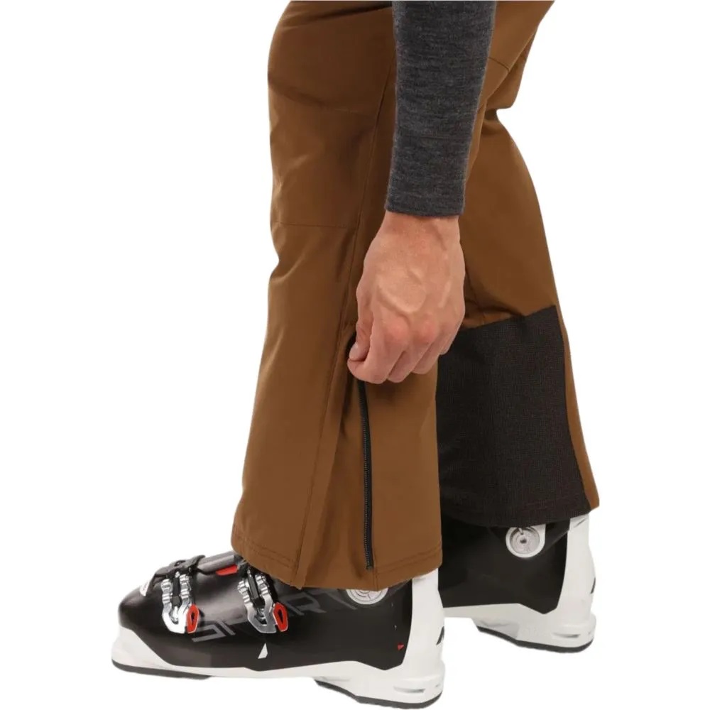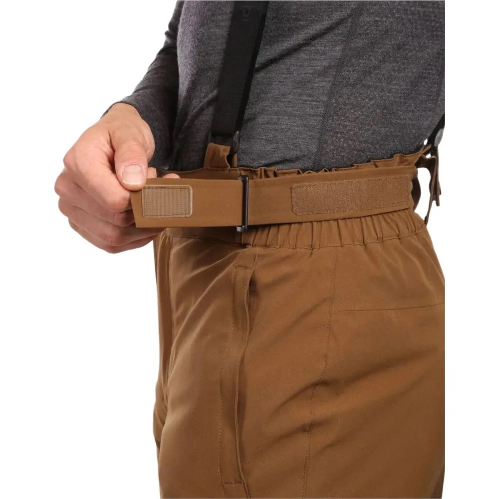 Еластичний матеріал гарантує свободу рухів, а регулярний крій забезпечує зручну посадку. Посилені нижні частини штанин із внутрішніми сніговими гетрами та додатковими блискавками захищають від пошкоджень і снігу у взутті. Для зручності передбачені знімні та регульовані підтяжки, які можна підлаштувати під власний стиль носіння.