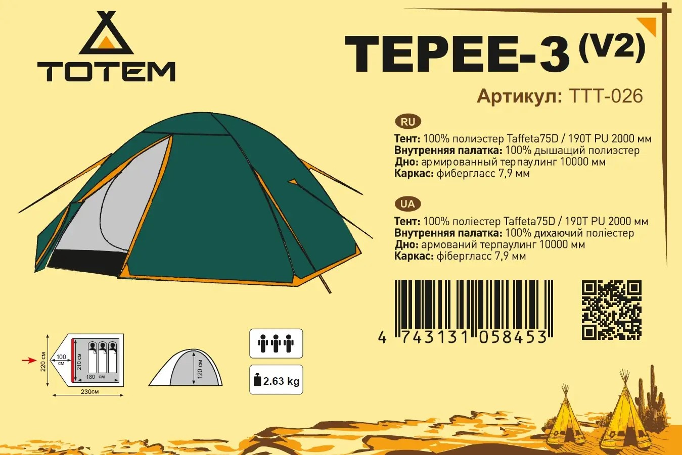 Особливості намету/тенту: Антимоскітна сітка, Вентиляційні вікна, Проклеєні шви, Тамбур