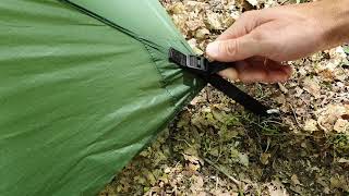- Матеріал зовнішнього тенту: Nylon 20D 240T Ripstop Double Siliconszed DWR, 3000 мм в.ст., зміцнююча структура Ripstop, двостороннє силіконизоване покриття, щільність - 48г/м², міцність на розрив - 7 кг.