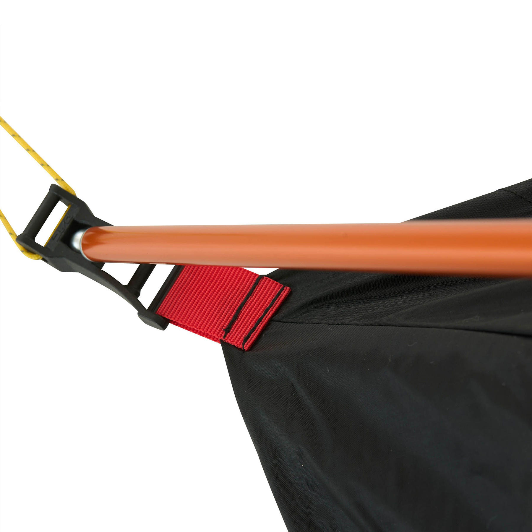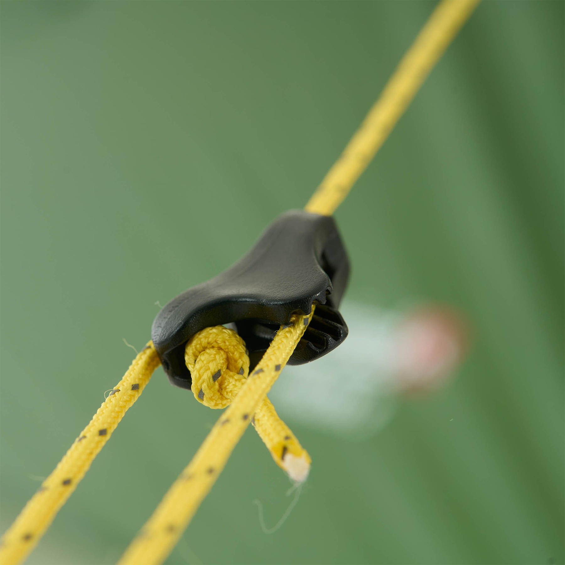 - Відтяжки намету виконані з надміцного матеріалу Dyneema®, що виключає розрив відтяжок навіть при сильному поривчастому вітрі. Відтяжки мають жовтий колір та вплетену відбиваючу нитку, завдяки чому вони лишаються добре помітними в світлий час доби, і темний час доби в світлі ліхтарика.