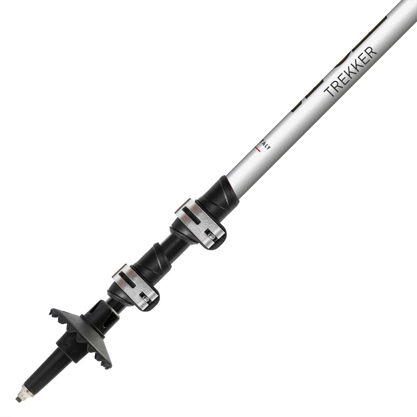 Трекінгові палиці Vipole Trekker для зимових походів, високогірних сходжень, складного трекінгу пересіченою місцевістю з важким рюкзаком за плечима або палиці для походу вихідного дня. Трекінгові палиці Vipole Trekker одночасно і зручні та надійні. Палиці мають невелику вагу, подвійну систему фіксації, виконані з найнадійнішого алюмінієвого сплаву 7075-T6-F56, оснащені рукояткою із щільної EVA-піни та трекінговими кільцями діаметром 54 мм для руху по каменю, м'якому грунту та легкому снігу.