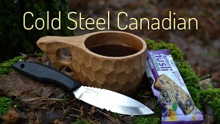 Кухонний ніж Canadian Belt Knife від Cold Steel - це бюджетний варіант ножа. Його особливість у нахилі рукоятки, щодо леза, що робить ніж зручнішим для різання. Лезо зроблено зі сталі 4116 Krupp, а ручка з полімеру.