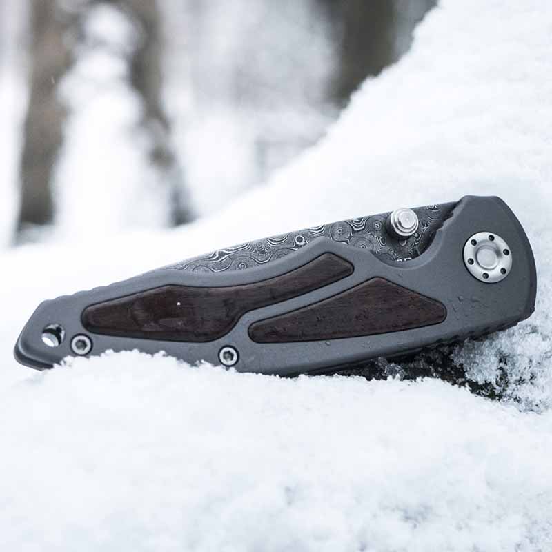 Рукоятка виконана з міцного та зносостійкого авіаційного алюмінієвого сплаву 6061-Т6. Поверхня рукояті має фінішне покриття методом анодування. Також накладки прикрашені рідкісними дерев'яними вставками із Цирікоту (Zirikote Wood).Характеристики