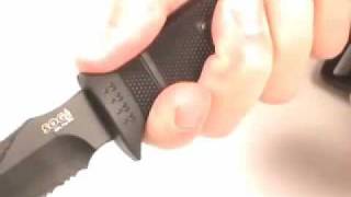 SOG SEAL Pup Elite - дуже міцний ніж з товстим напівсерейторним лезом зі сталі AUS-8. Він здатний витримати великі навантаження і довго залишається гострим. Ручка зручна, легка, не ковзає та має отвір для темляка. У комплекті чохол з кайдекса, кріплення якого сумісні із системою MOLLE.