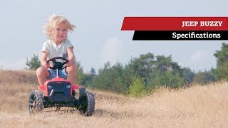 Jeep Buzzy Rubicon – це справжнє відчуття їзди бездоріжжям. Шини з високим позашляховим протектором, кермо з поворотною ручкою, а також капот із ґратами та сердитими очами-фарами роблять його справжнім Jeep Rubicon. Веломобіль для маленьких хлопчиків та дівчаток від 2 до 5 років.